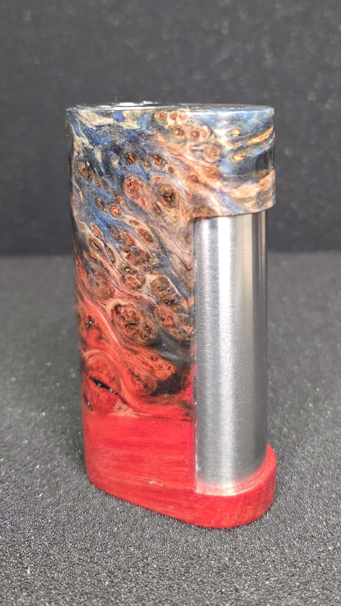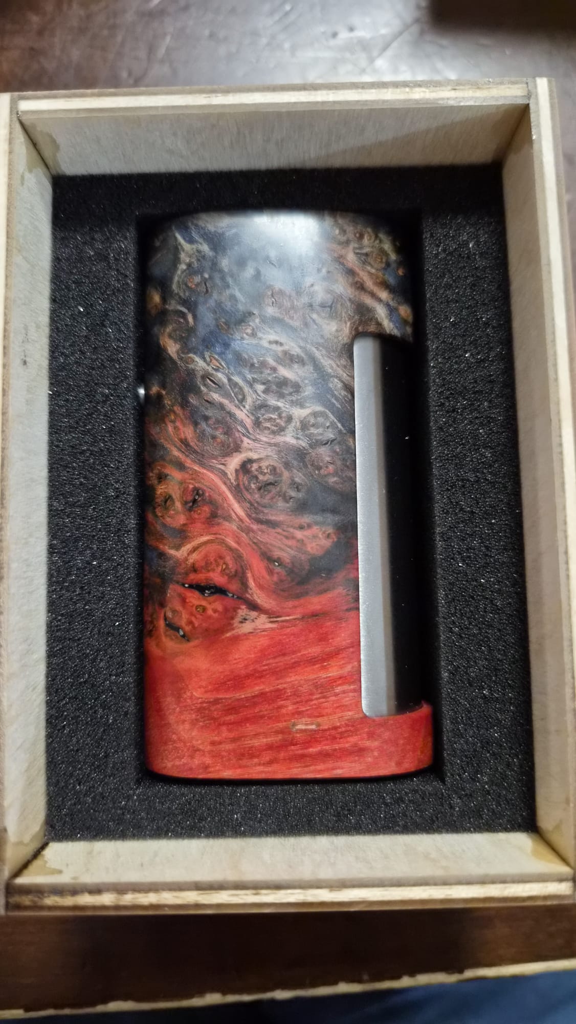 Box Mod con corpo in Legno di Acero Stabilizzato, lavorato a mano. Ogni pezzo ha venature e tonalità uniche. Elettronica; Nucleo Compact 60W.